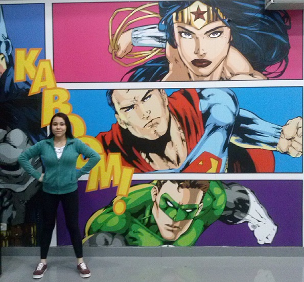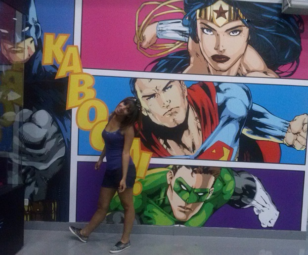 Mayara com os Super Heróis.