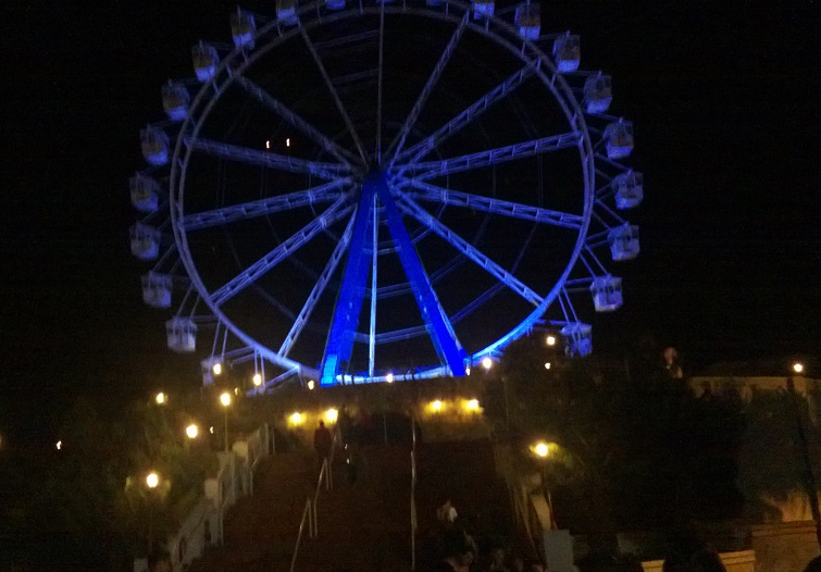 A “Roda Gigante” ficou linda a noite. A May ficou com um pouco de medo depois que entramos na cabine,rsrs.